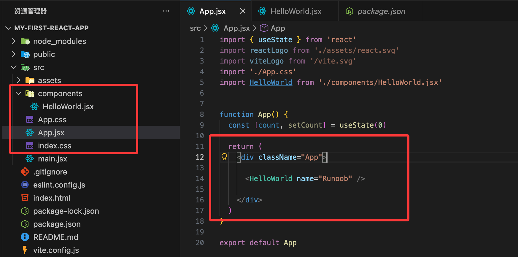 import HelloWorld from './components/HelloWorld.jsx' // 在 return 中添加: <HelloWorld name="Runoob" />